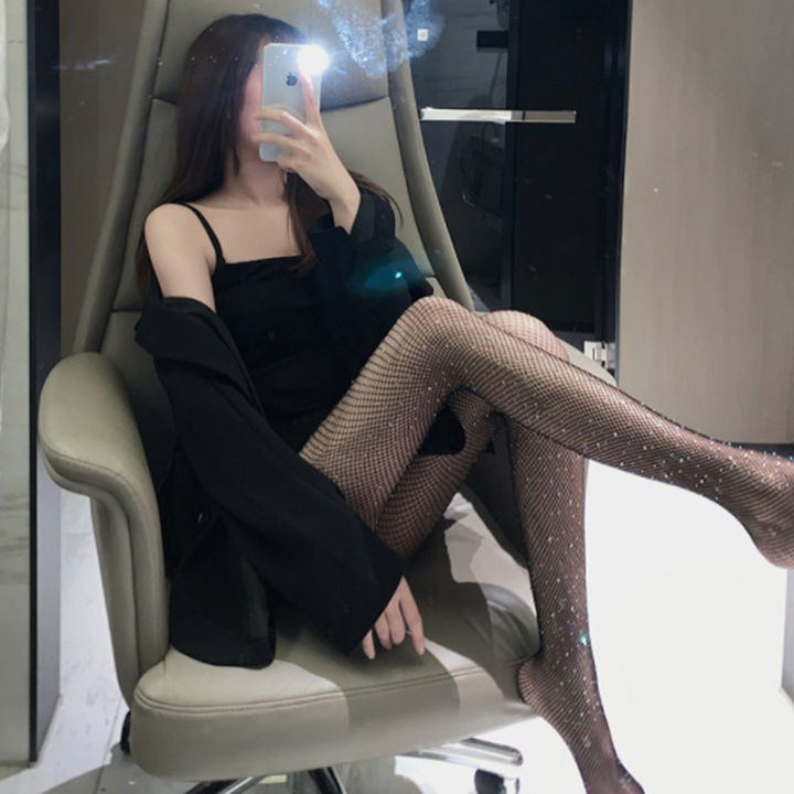 Solzy Summer Fishnet Diamond Pantyhose Women Fashion Shiny Net Tights Female Slim Rhinestone Mesh Nylon Stockings Tights LUKE