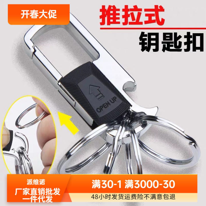 Multifunctional men's waist buckle push-pull switch car key chain multi-ring pendant anti-loss belt bottle opener consignment