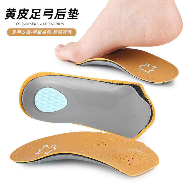 Adjustment Yellow Leather Arch Flat Foot Insoles Men and Women Invisible Anti-Slip Thickened Half Pads