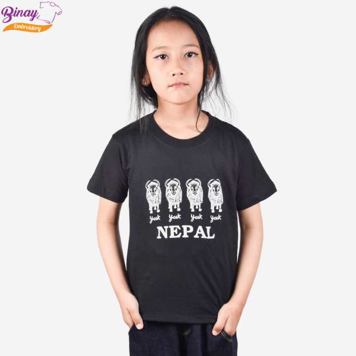 Binay Embroidery Black Yak Printed T-Shirt For Child - Fashion | T-Shirts For Boys And Women | Printed T-Shirts |
