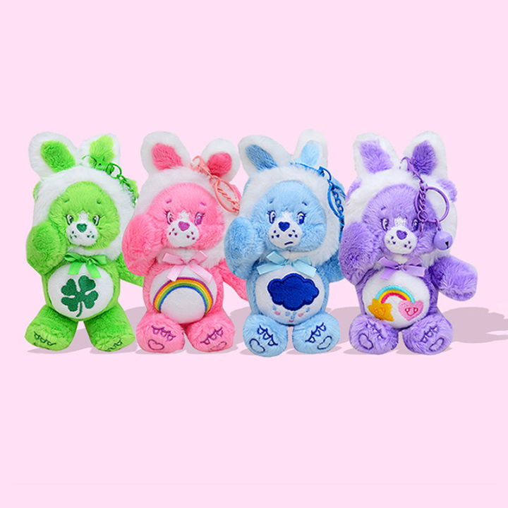 Carebears Rainbow Bear Plush Pendant Doll Transformed Into Rabbit Ear Keychain Pendant Tetong
