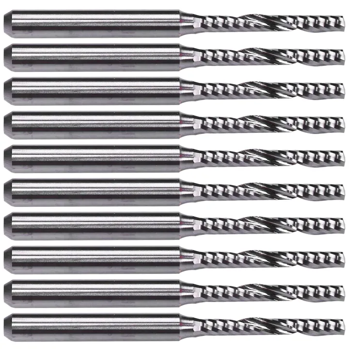 FORIDE 10X 2mm x 15mm Carbide Single Flute Spiral End Mill CNC Router Bit