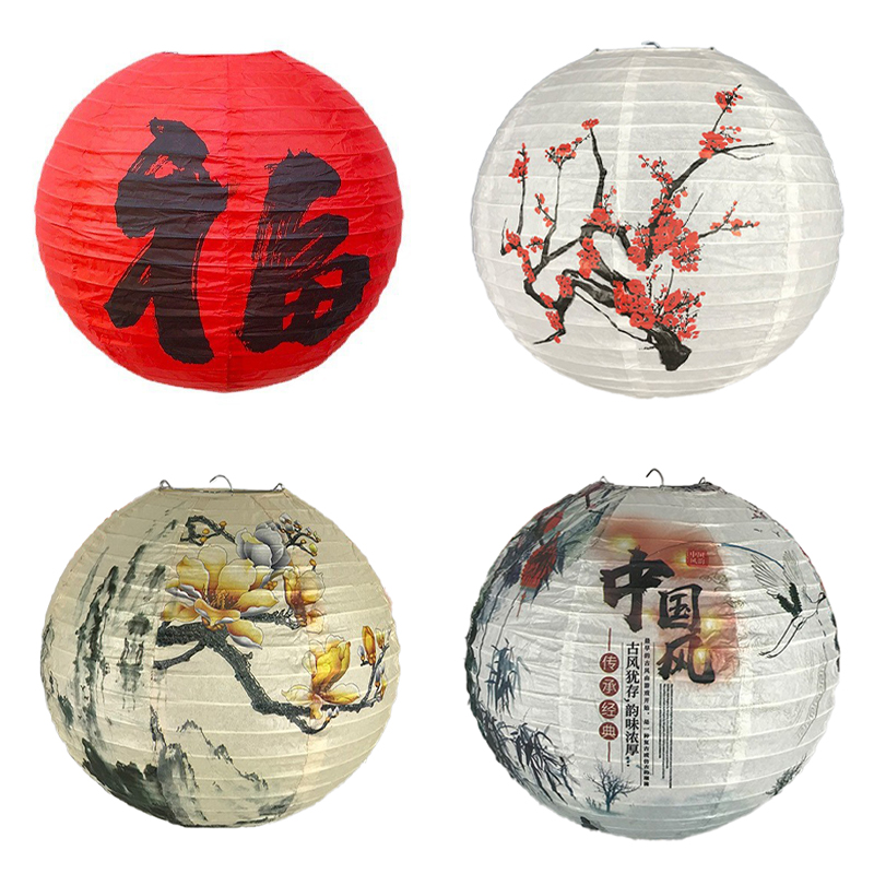 Pine/Orchid/Plum Blossom Round Paper Lantern Lamp Shade Chinese Oriental Style Light Restaurant Wedding Home Decor Gifts BOYUAN