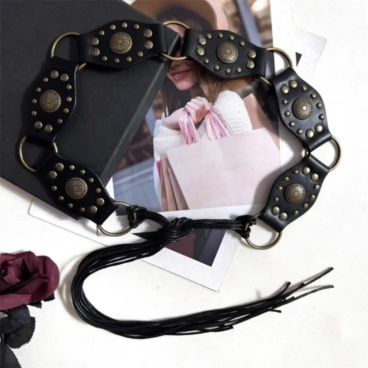 Retro Grommet PU Leather Waist Belt Gothic Steampunk Vintage Rivet Waist Cinch Belt Wide y2k Waistband Women Ladies