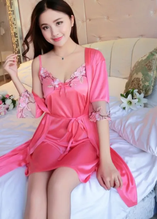 Sexy Lingerie Set Sleep Wear Satin Smooth Comfortable Night Wear Robe Set Of 2 ( Robe + Dress )