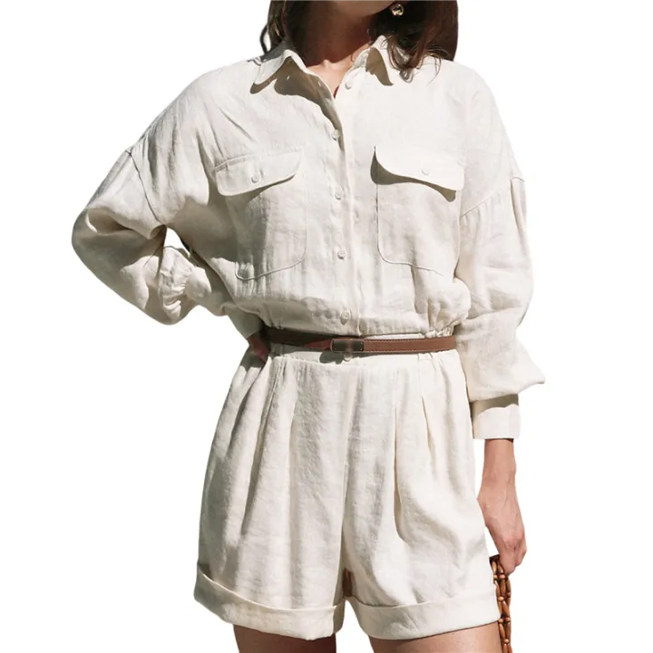 Women'S%20Casual%20Loose%20Overalls%20Jumpsuits%20Long%20Sleeve%20Wide%20Leg%20Shorts%20Rompers%20with%20Pockets%20-%20Image%201