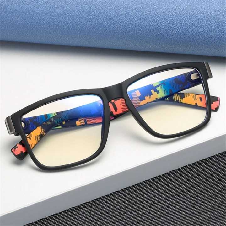 Black Matte Trendy Unique Transparent Designed Premium Blue Ray Cut Square Framed Unisex Computer Glasses For Men