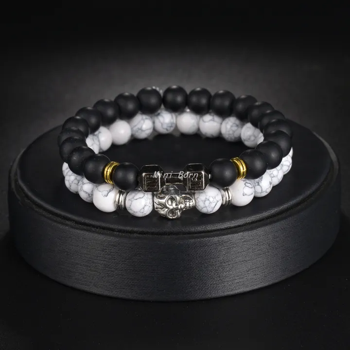 Mini Born Gothic Skull Bracelet For Men Women Natural Stone BeadPortable s Bracelets barbell Boy Biker Cool Wristband Gift kpop