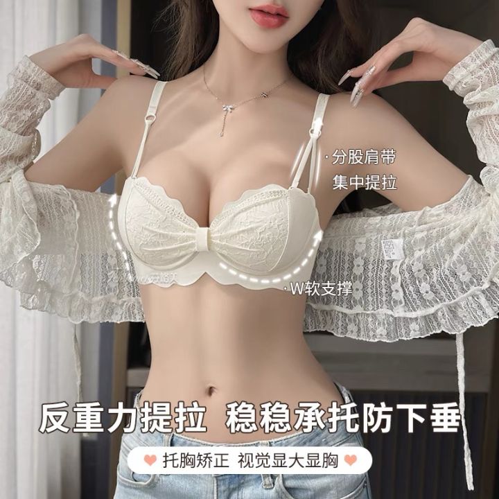 Gather%20up%20small%20to%20show%20big%20underwear%20women's%20comfortable%20non-wire%20pure%20desire%20lace%20cream%20color%20sweet%20girl%20bra%20-%20Image%201