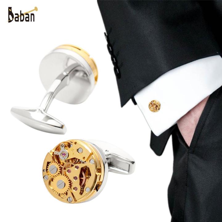 1 Pair Real Working Watch Movement Cufflinks Deluxe Steampunk Style Gold Color -