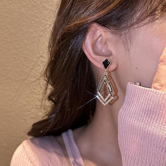 1%20Pair%20Simple%20&%20Elegant%20Korean%20Style%20Earrings%20-%20Geometric%20Black%20Double%20Rectangle%20Drop%20Earrings%20With%20Diamond%20Sparks%20-%20Party%20Wear%20&%20Professional%20Wear%20Earring%20For%20Women%20,%20Girls%20&%20Teens%20-%20Image%207