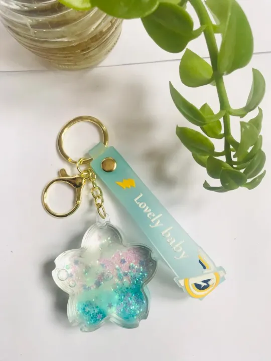 1 Pcs Flower Shaped Key Chain With Cute Holders And Water Mixed With Sparkels And Glitters
