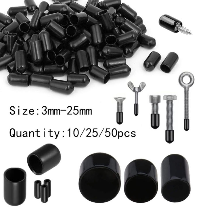 10-50pcs Threaded End Caps, 3-25mm PVC Rubber Pipe Cap, Screw Protector for Plastic Tube Steel Hub, Push-in Plug