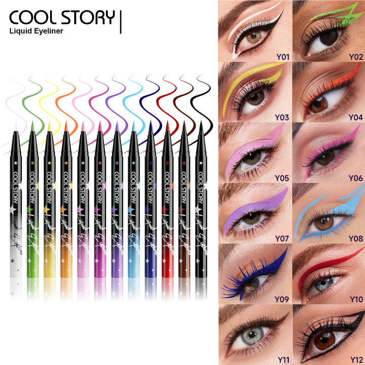 coolstory cool color eyeliner matte long lasting quick dry waterproof 12 color paint face color cross-border makeup