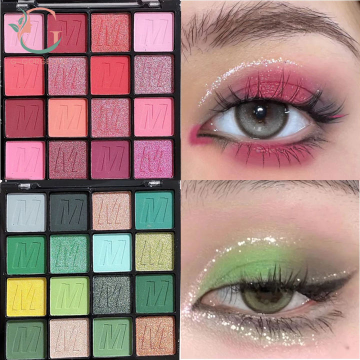 16 Colors Bright Jam Color Eyeshadow Palette Enchantress Glitter Red Green Pink Eye Shadow Long Lasting Eyes Makeup Cosmetics