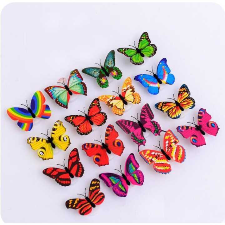 16 Pcs 3D Butterfly Wall Stickers Crafts Butterflies With Sponge Gum And Pins(Colour May Vary)