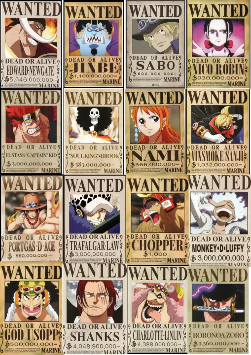16pcs%20A4%20Size%20Updated%20Wanted%20Bounty%20Wall%20Poster%20(One%20Piece%20Anime)%20Pirate%20crew%20Wanted%20Poster%20Set%20-%20One%20Piece%20Poster%20%7C%20-%20Image%201