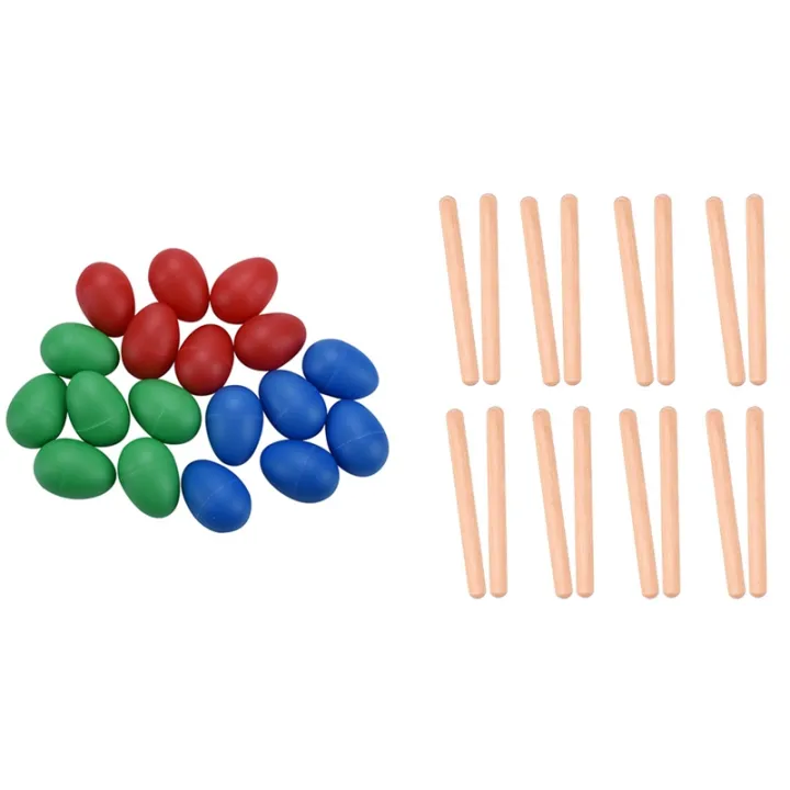 18Pcs Egg Shakers with 8 Pairs Classical Wood Claves Musical Percussion Instrument Natural Hardwood Rhythm