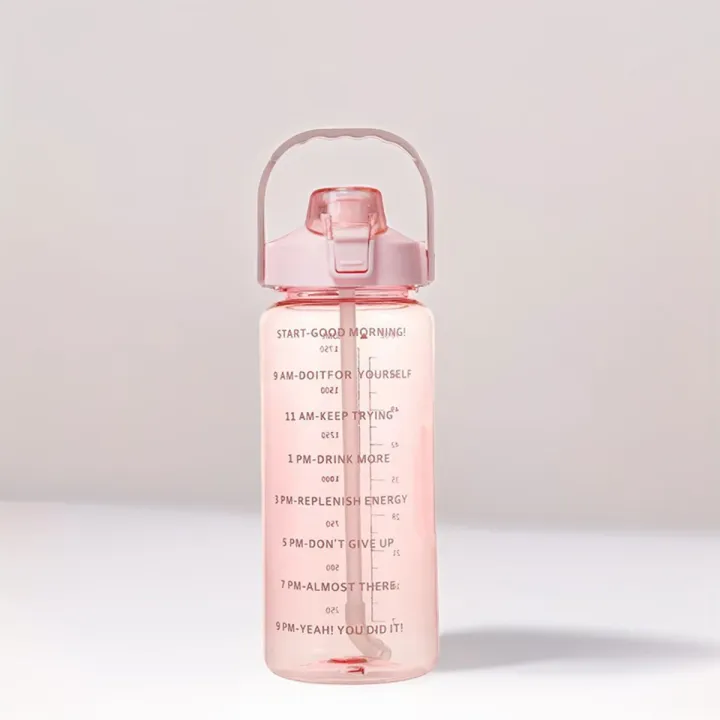 2 Liter Sports Straw Water Bottle with Stickers Portable Large Capacity Fitness Bike Cup Summer Ice Cold Water Jug with Time Marker