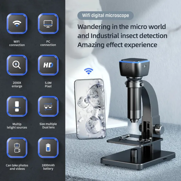 2000X High Power Digital Microscope WIFI HD for Wifi PC Hold Bracketad Magnifying Glass School Children Science Magnifier