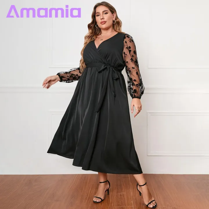 %E3%80%902025%20Version%E3%80%91%20Plus%20Size%20Women%20Dress%20Stunning%20V-neck%20Embroidered%20Lace%20Midi%20Dress%20with%20Belt%20Elegant%20High%20Waist%20Wrap%20Gown%20for%20Women%20Wrap%20Dress%20with%20V-neck%20-%20Image%201