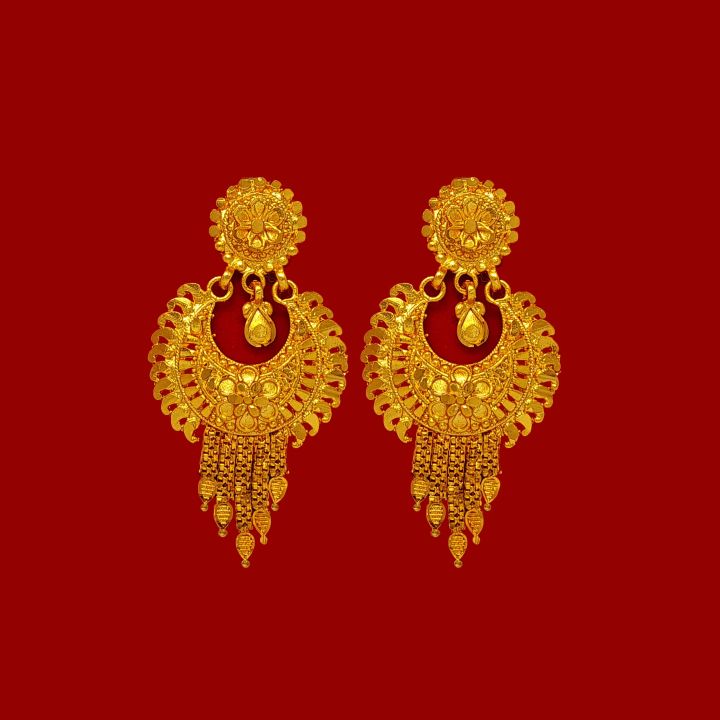 24k Gold Plated Earrings Jhumka In Rani Haar Design For Women