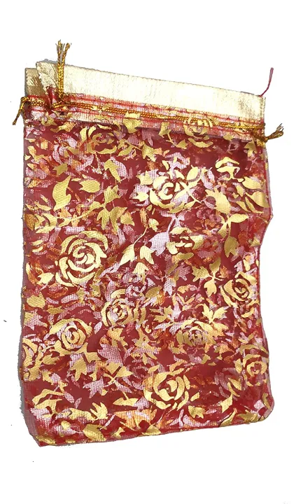 25 pieces of 23Cm X 13Cm Net Fabric Drawstring Pouch/ Potli for Dry Fruits Packing, Organza Shagun Wedding Party Favor Gift Bags