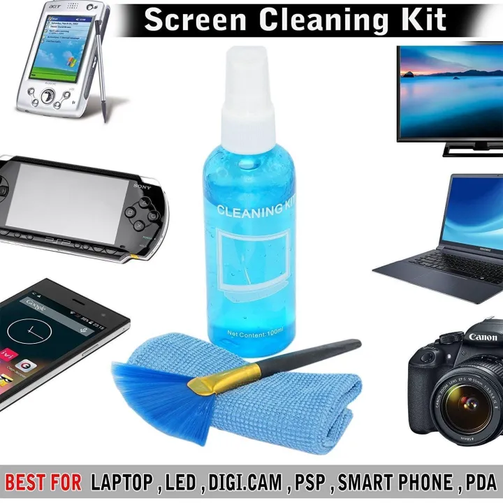 3 In 1 Screen Cleaning Kit With Microfiber Cloth & Brush For Laptops,Mobiles,LCD,LED,Computers