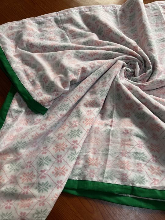3 Layer Dhaka Malmal Khasto Sirak 90"x90" with Green Piping