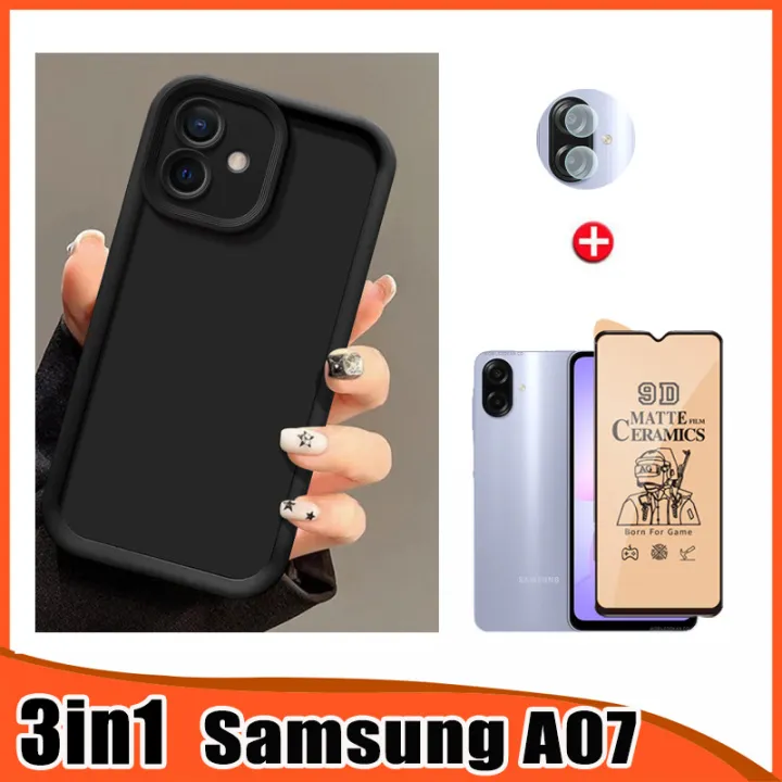 3in1 Samsung A07 Phone Case for Samsung A17 A06 A16 Soft Ceramic Screen Protector Film + Camera Lens Film