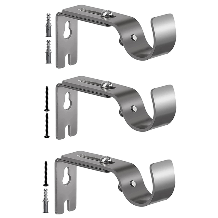 3Piece Silver Curtain Rod Brackets Heavy Duty Curtain Rod Holders Curtain Rods No Drilling for 1 Inch Rod with Installation Screws