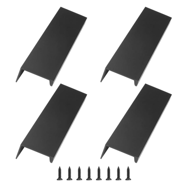 4 Piece Finger Edge Pull Silver Concealed Handle Modern Style Curved Drawer Handle Aluminum Alloy Invisible Handle Black