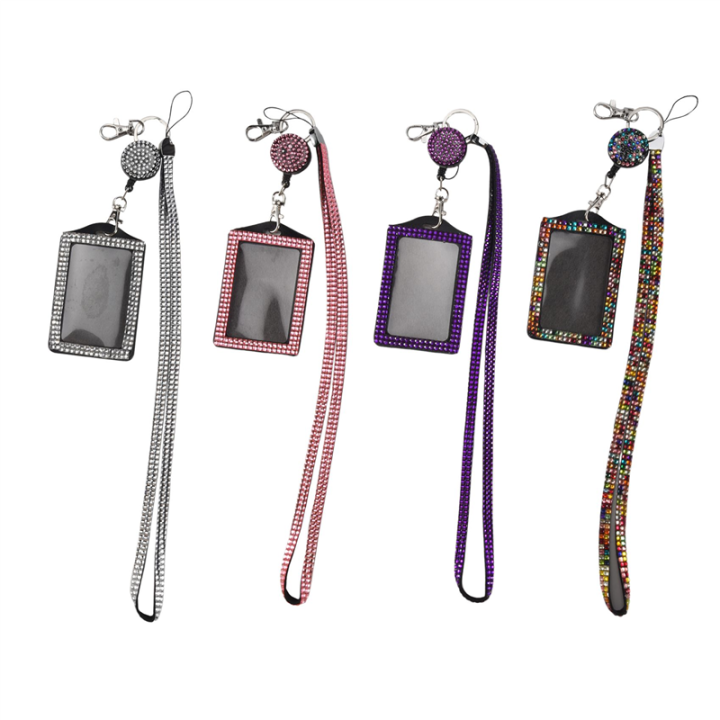 4 Sets Rhinestone Lanyard ID Card Holder Badge Reel Card Holder