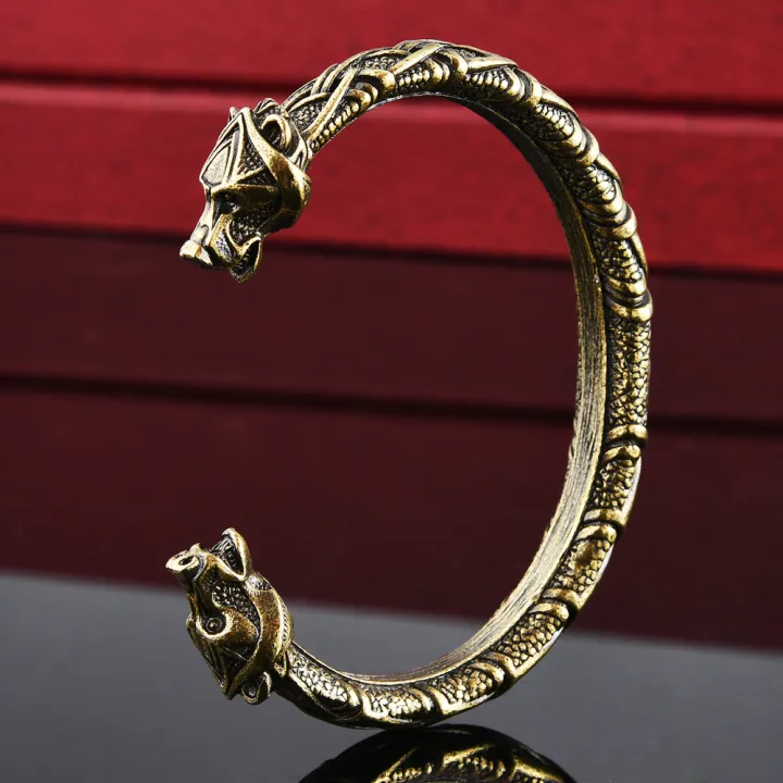 【41702198】Massive Bracelet Wolf Bangle Wristband Nordic Vikings Cuff