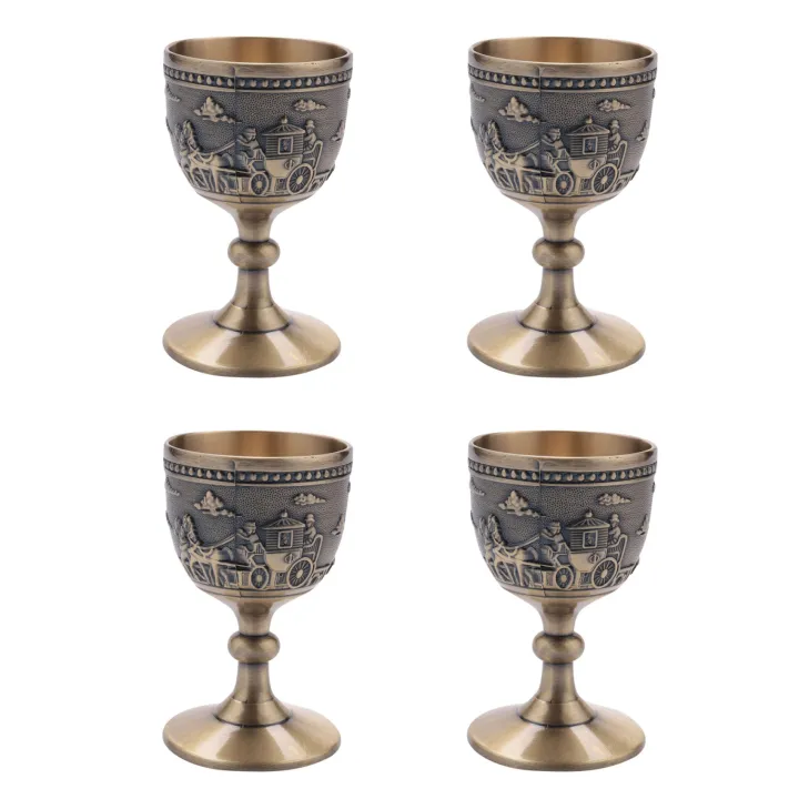 4X Classical Metal Wine Cup Handmade Small Goblet Household Copper Wine Glass Carving Pattern