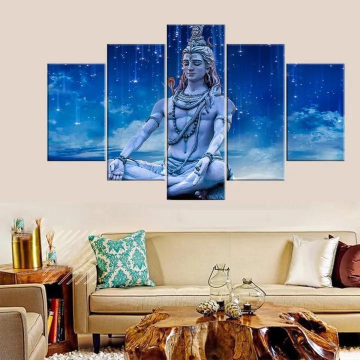 5%20Piece%20Premium%20Quality%20HD%20Wall%20Art%20Picture%20Lord%20Shiva%20on%20Canvas%20for%20Living%20Room%20Decor%20Solid%20Wood%20Inner%20Frame%20-%20Image%201