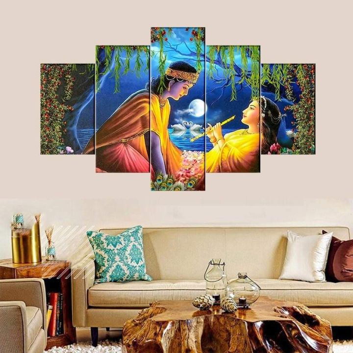 5 Piece Radha Krishna Canvas Art Wooden Frame Home Decor By Om Canvas