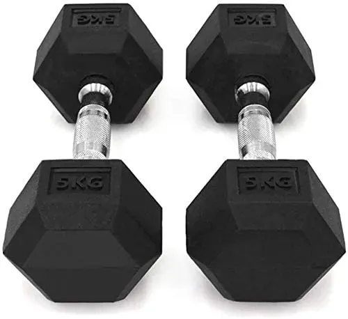 5Kg Rubber Hex Dumbells (Pair), 5 Kg Dumbell, Rubber Hex Dumbell ( 5Kg*2 Pc = 10 Kg), Dumbbells