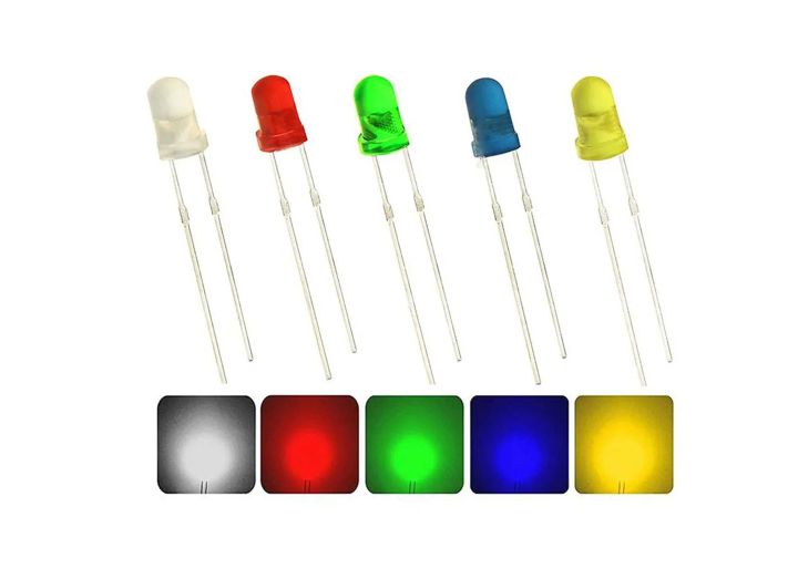 5mm Led White - Green - Red - Blue - Yellow Transparent Diffused 50 Pcs
