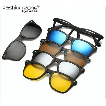 6 In 1 Magnetic Mirrored Sunglasses Clip On Lens Glasses Frame, View Clip On Sunglasses