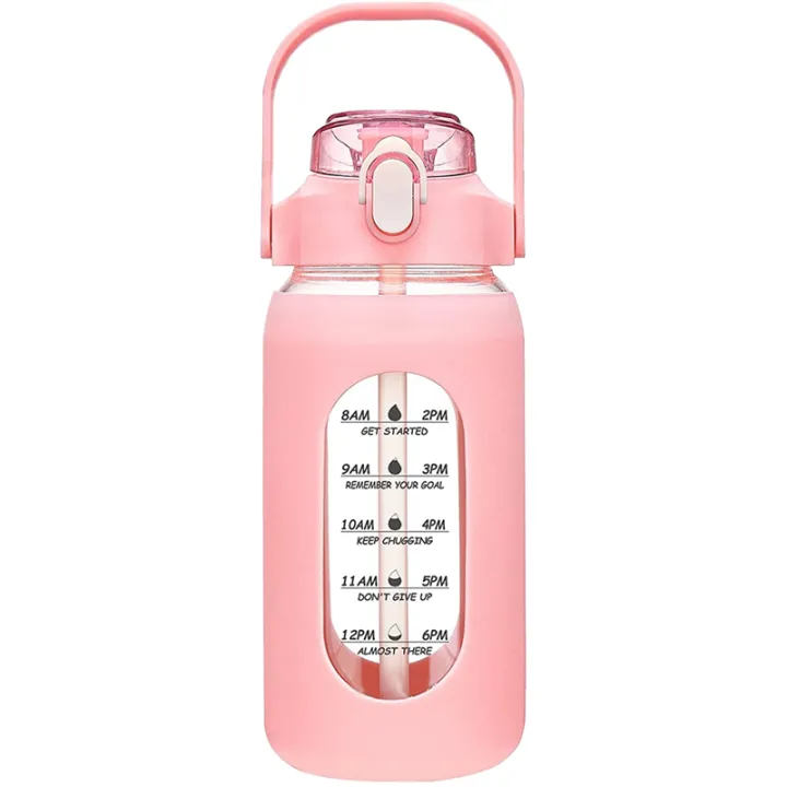 64Oz Glass Water Bottles with Straw, Glass Bottle Pink