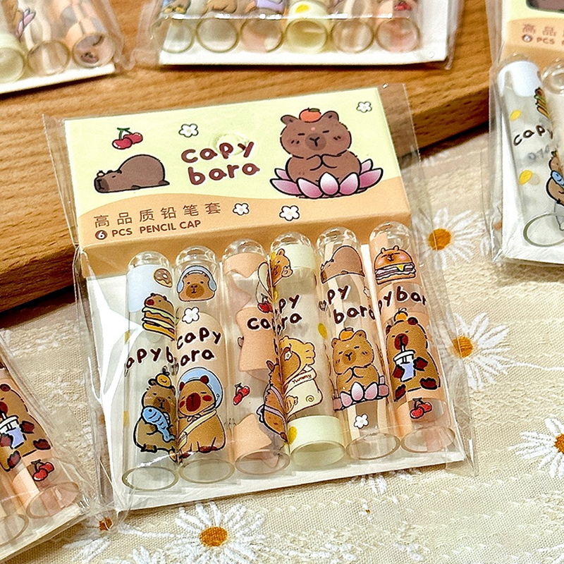 6pcs Pack Capybara Pencil Cap For Pupil Transparent Protects Pencil Tip Japanese Kawaii Stationery Cute Stuff Back To School