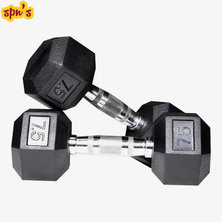 7.5Kg Rubber Hexa Dumbbells (Pair), Dumbells , 7.5 Kg Dumbell, Total 15 Kg