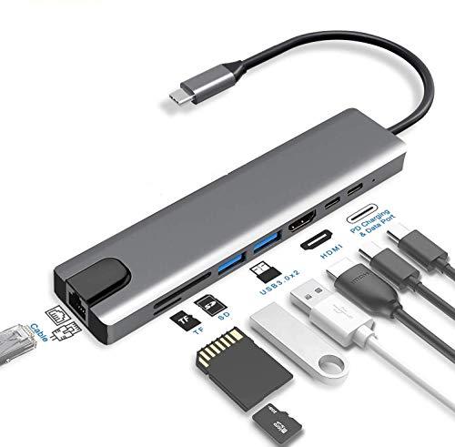 8 in 1 For MacBook Pro Air Multiport USB-C HUB To 4K HDMI USB 3.0 Aux Adapter