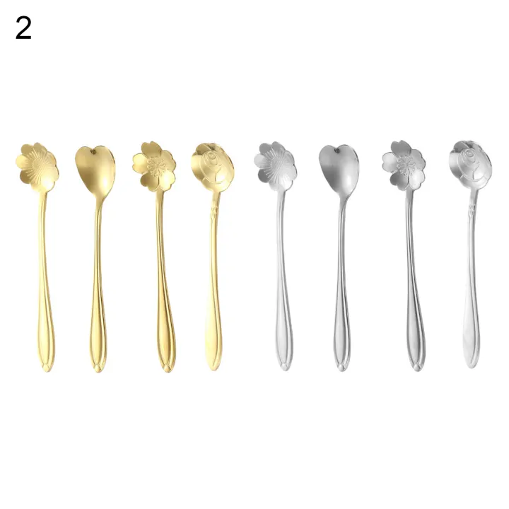 8Pcs/Set Dessert Spoon Reusable Safe Stainless Steel Flower Coffee Tea Spoon for Kitchen