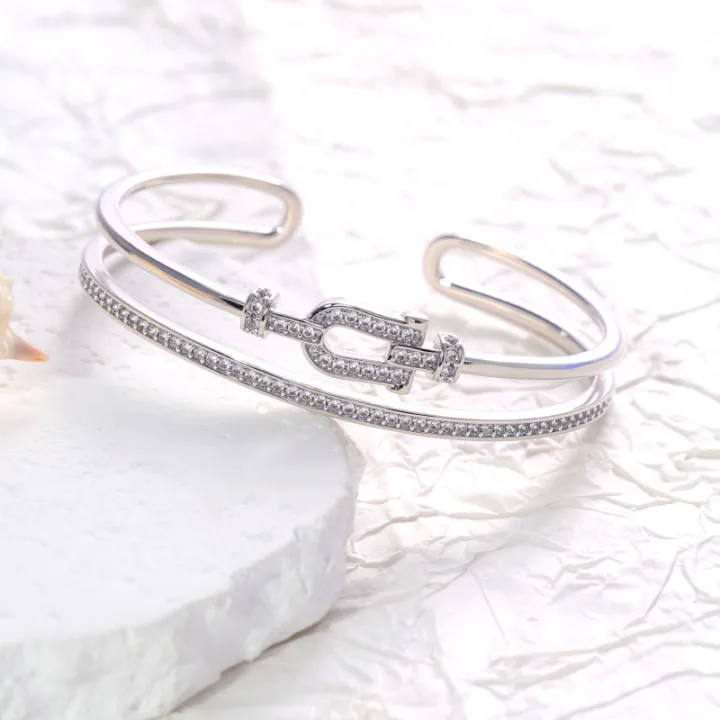 A high-quality bracelet featuring U-shaped elements set with zirconia stones and an open design, with exquisite craftsmanship.