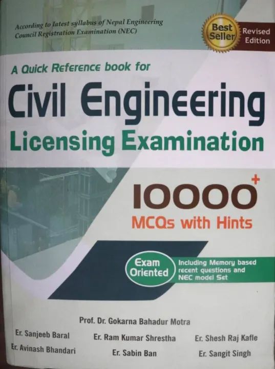 A Quick Reference book for Civil Engineering Licensing Examination- Prof. Dr. Gokarana Bahadur Motra, Er. Sanjeeb Baral, Er. Ram Kumar Shrestha, Er. Shesh Raj Kafle, Er. Avinash Bhandari, Er. Sabin Ban & Er. Sangit Singh
