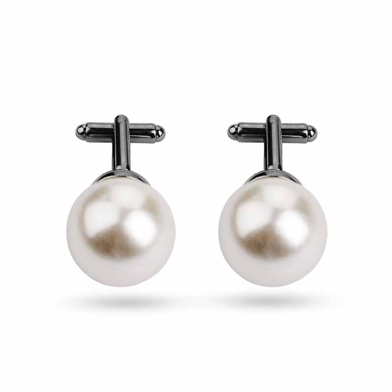 【a470ae32】Imitation pearls Cufflinks man round white beads Cuff woman big Shiny Business Casual Cuff Buttons for suit