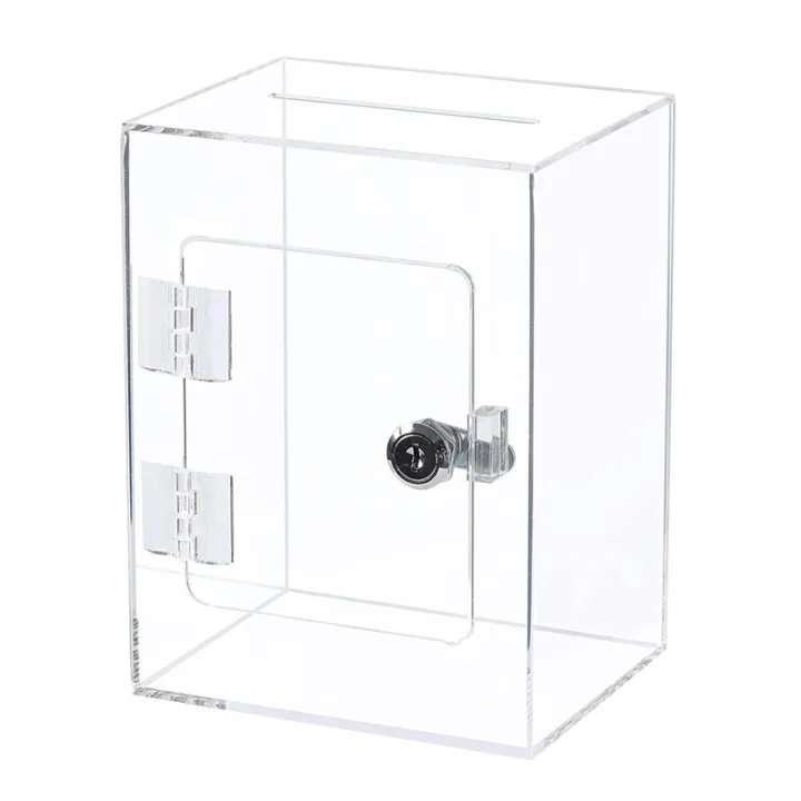 Acrylic Donation Ballot Box- Tip Jar for Money with Lock Key Comment Box Vote Box