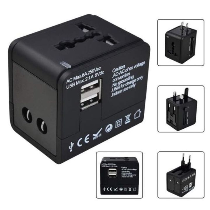 Super Quality Universal Travel Adapter with Dual USB Ports - Worldwide Plug Charger for Phone, Laptop & Devices, 6A Fuse, Safety Shutters, Patented Design, Works in 150+ Countries (US/EU/UK/AU)